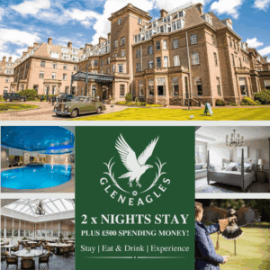 WIN A TRIP TO THE GLORIOUS PLAYGROUND! 2 NIGHT STAY FOR 2 PEOPLE AT THE GLENEAGLES HOTEL + £500 CASH SPENDING MONEY! 100 INSTANT WINS!