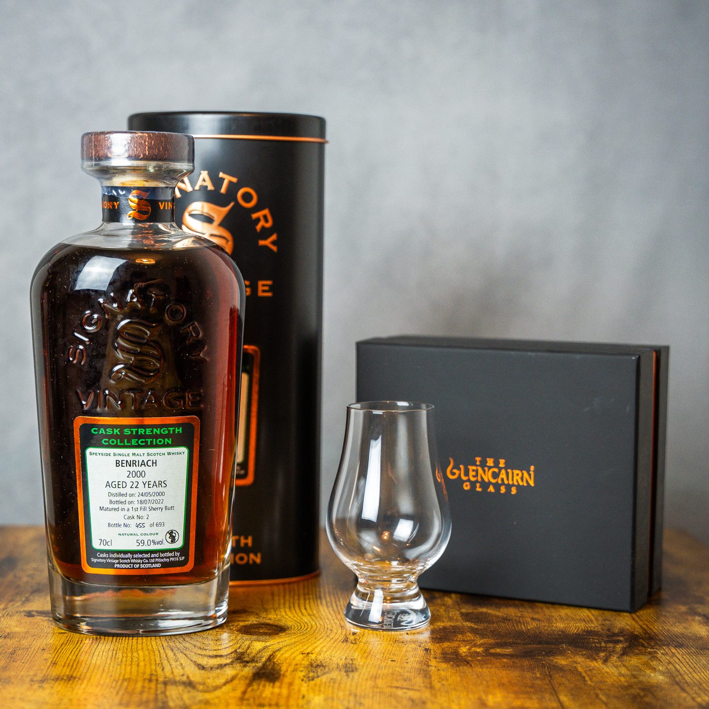 Signatory Vintage Cask Strength Collection – Benriach 22 YO + A Set of 2 Glencairn Glasses