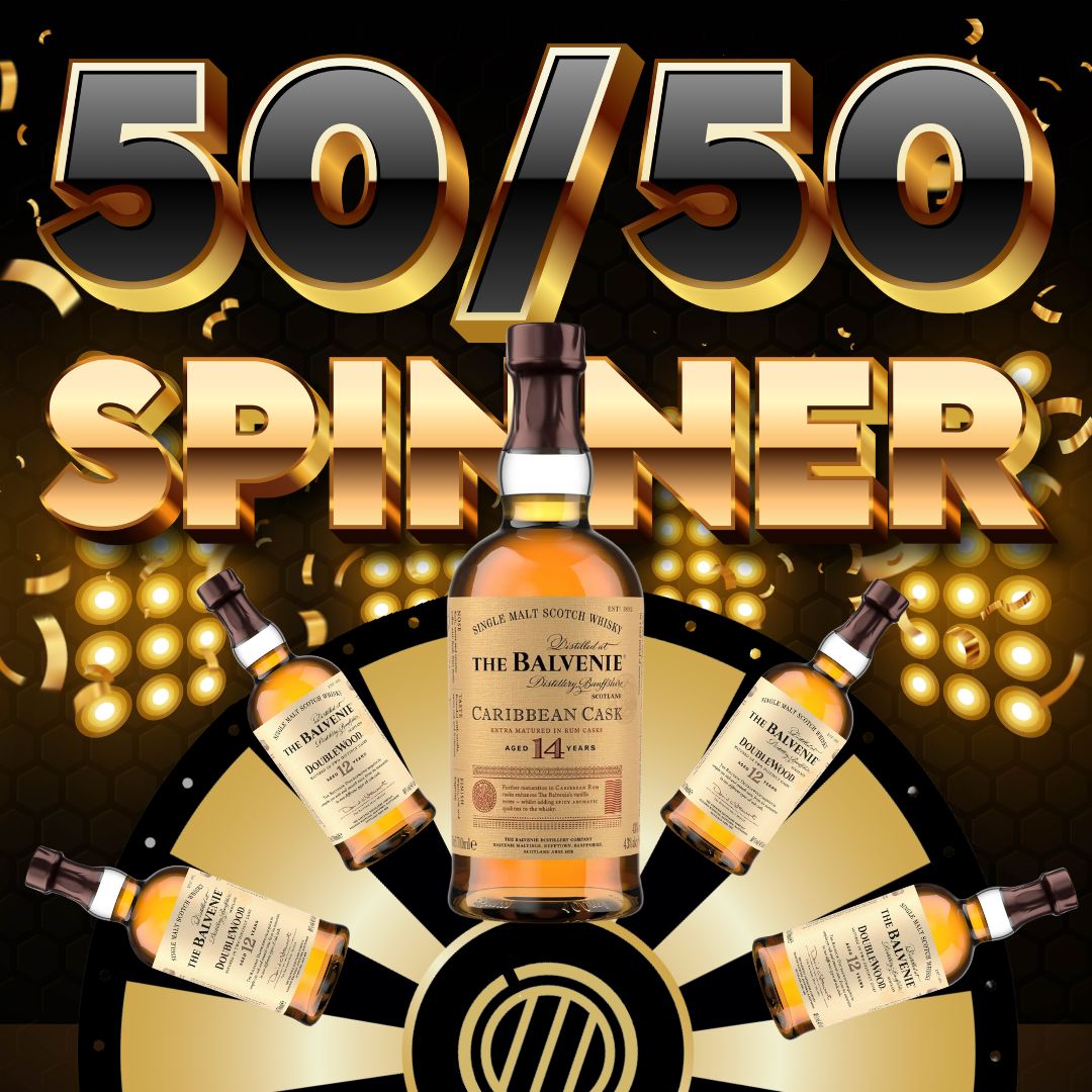 THE 2PM 50/50 SPINNER WINNER! 5 BOTTLES UP FOR GRABS! BALVENIE BELTER! BALVENIE 14YO CARIBBEAN CASK MAIN PRIZE!