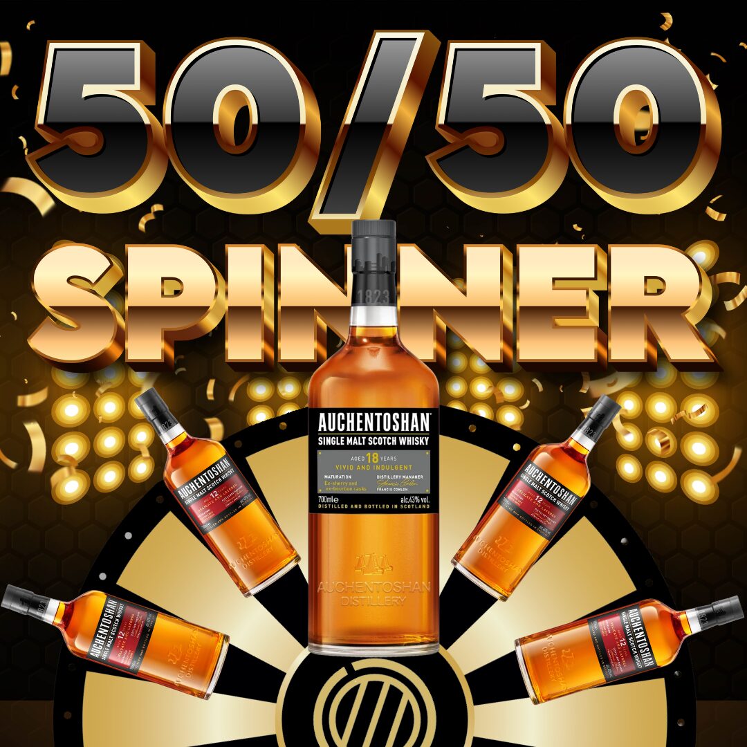 THE 4PM 50/50 SPINNER WINNER! 5 BOTTLES UP FOR GRABS! AUCHENTOSHAN SPECIAL! AUCHENTOSHAN 18YO MAIN PRIZE!