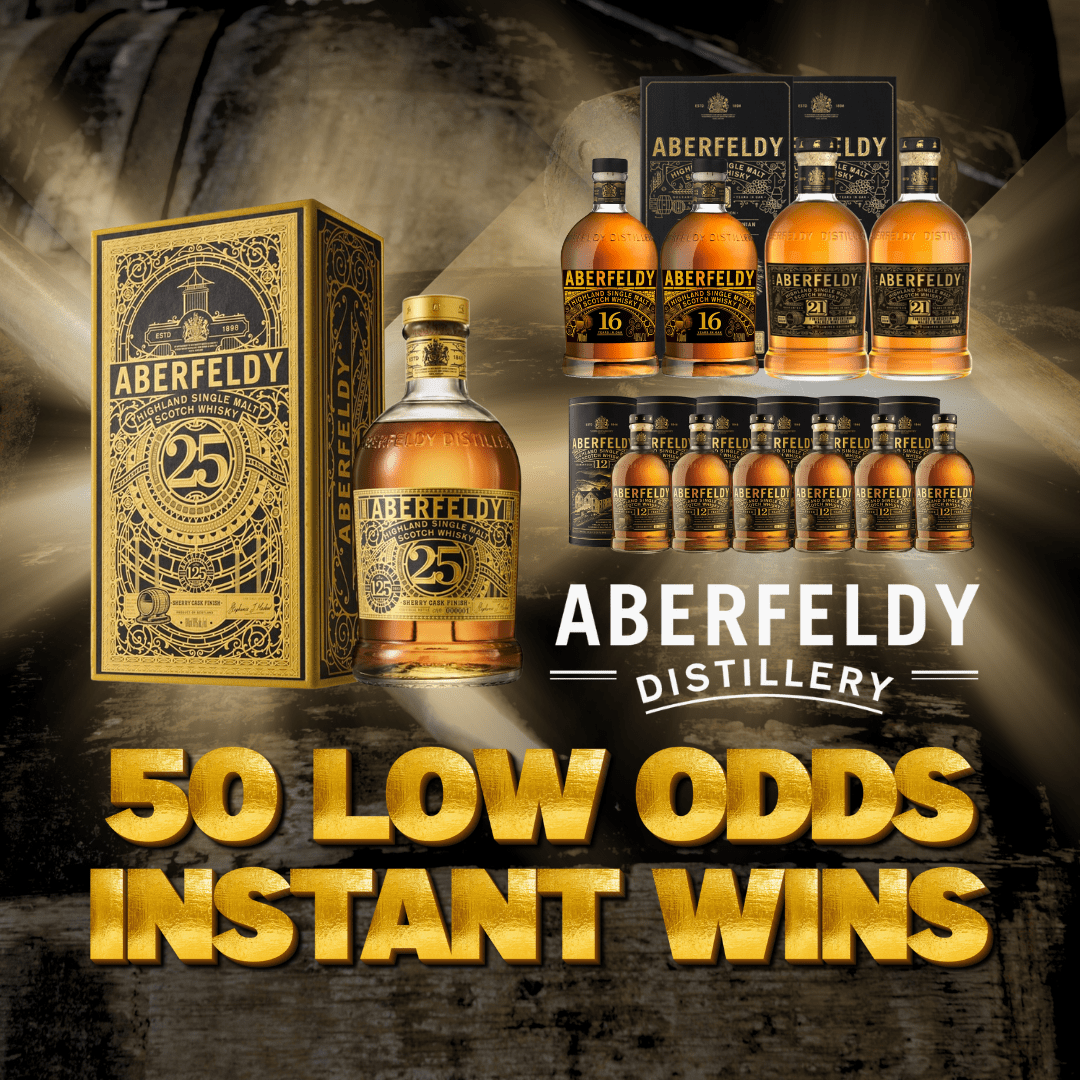 This Aberfeldy FRENZY comes with 50 instant wins including loads of amazing bottles! There are even some 21YO instant wins to be found!
