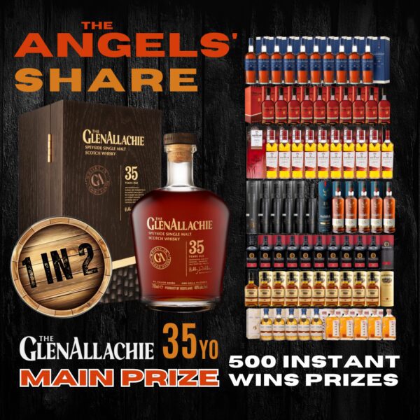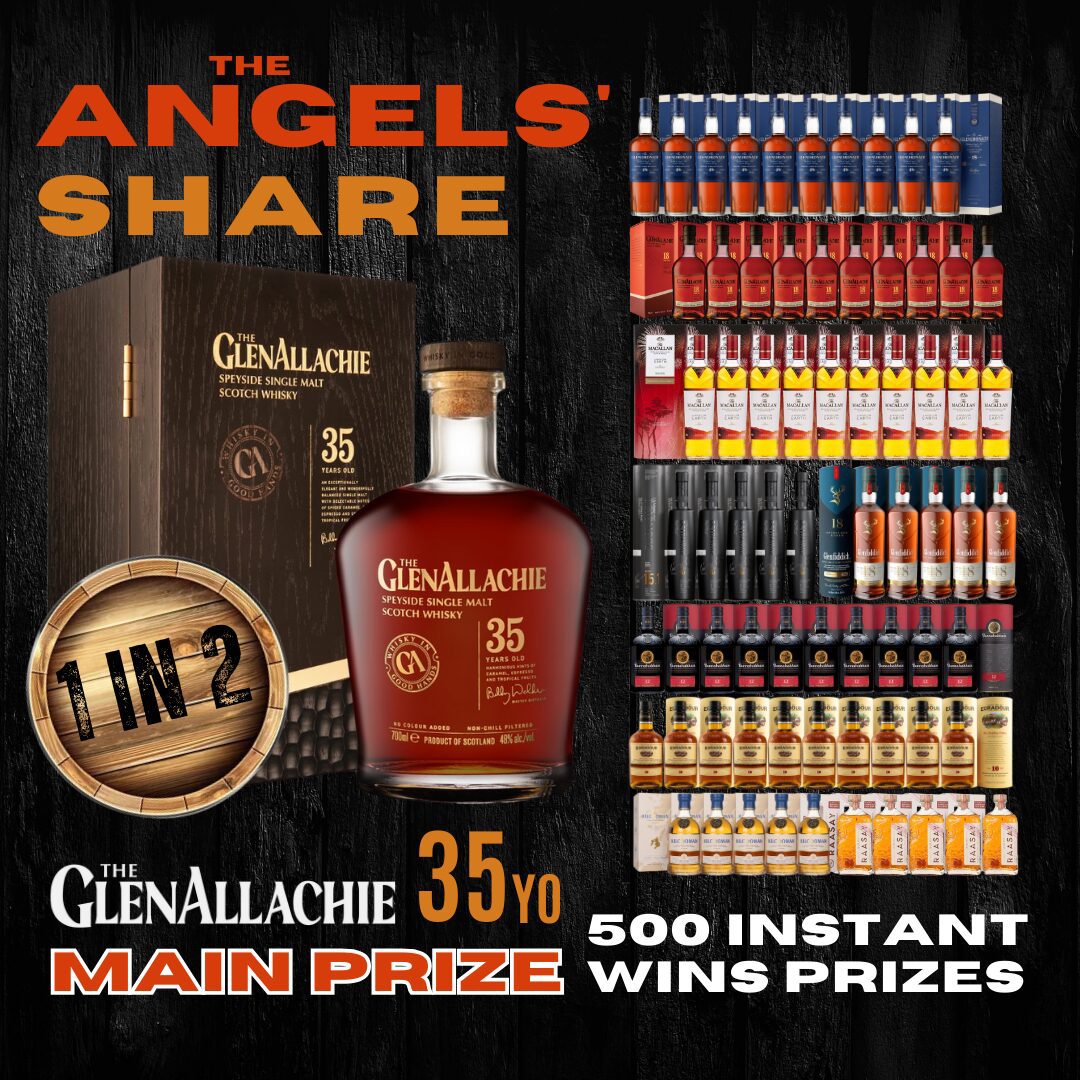 The Angels Share Whisky 1 in 2 ! One In Two Chance Of Winning! Main Prize Of The Brand New Glenallachie 35YO + 500 INSTANT WINS!!