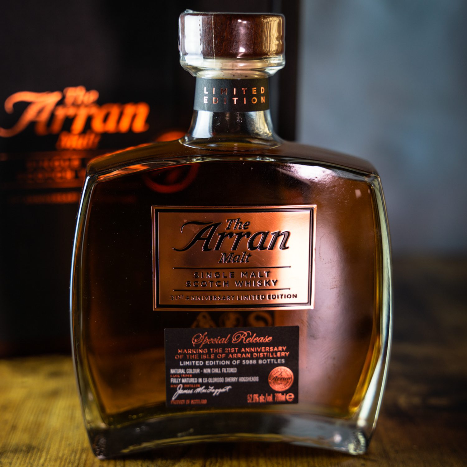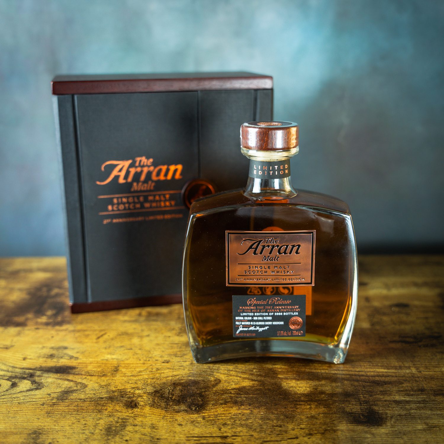 The Arran 21st Anniversary Limited Edition Single Malt Whisky was released in 2016. A Limited Release of only 5988 bottles at natural Cask Strength and fully matured in Ex-Oloroso Sherry Hogsheads.