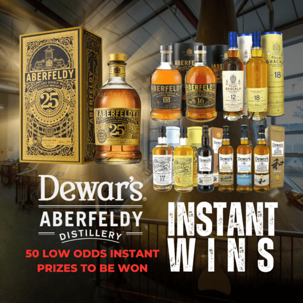 For £2.99 your name will be in the hat for the MEGA Aberfeldy 25 Year Old main prize but you could also win fantastic instant wins prizes from this AMAZING BRAND!