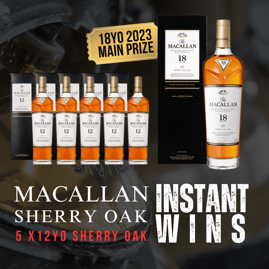 The ever popular Macallan Sherry Oak 18 Year old makes a return to the club! This time you can win this bottle + up to 20 instant win prizes including 5 x Macallan 12YO Sherry Whiskies!