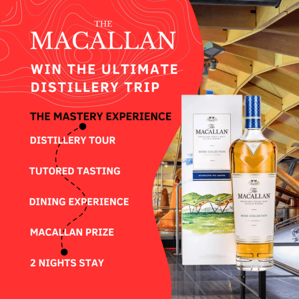 The Macallan Mastery Experience For 2 People – Win The Macallan Home Bottle, 5 Course Meal, Whisky Tasting & 2 Nights Accommodation!
