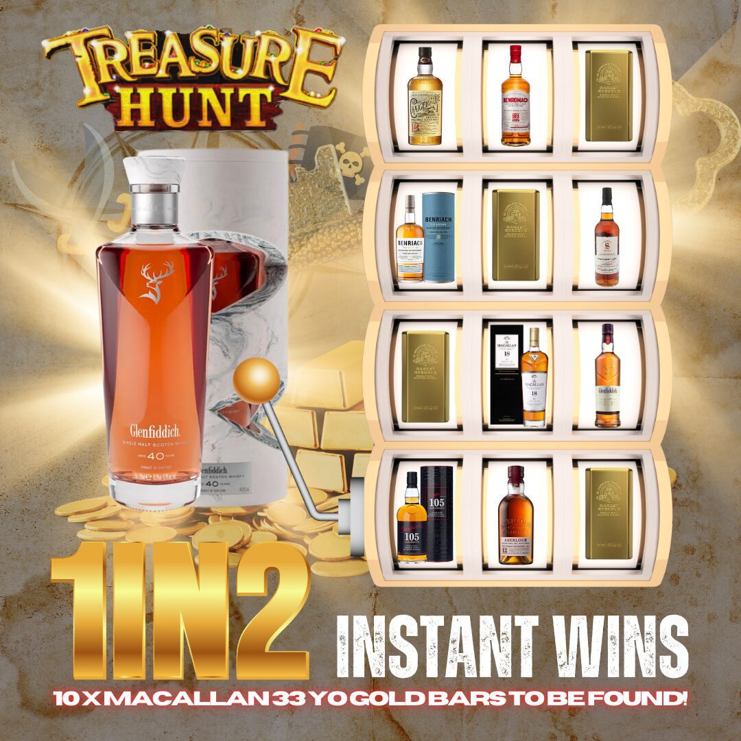 THE SPEYSIDE 1 IN 2 TREASURE HUNT! GLENFIDDICH 40YO MAIN PRIZE PLUS 1250 INSTANT WINS! WHO WILL FIND THE 33YO MACALLAN GOLD BARS?