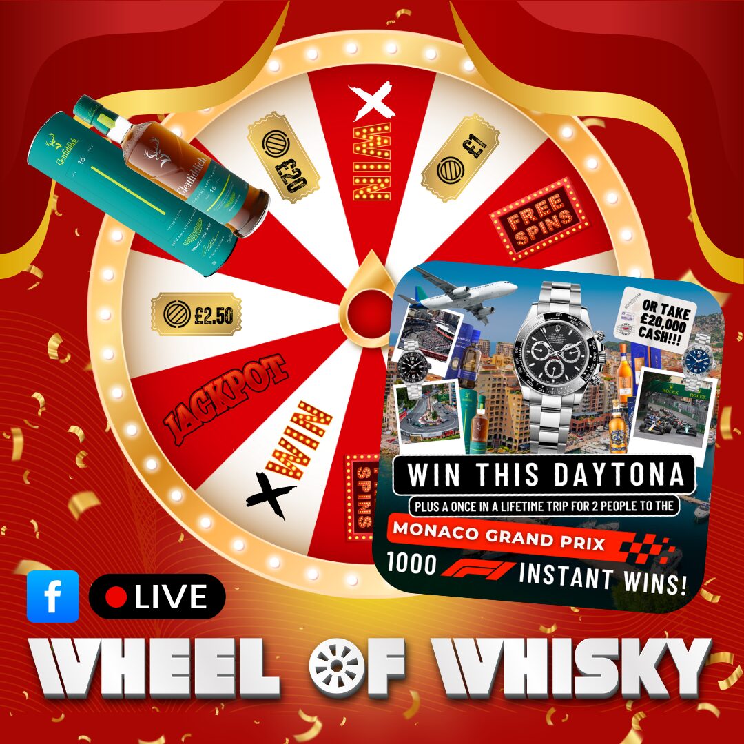 THE WHEEL OF WHISKY! £1000 WORTH OF ENTRIES INTO OUR JACKPOT PRIZE ROLEX DAYTONA & F1 TRIP!!