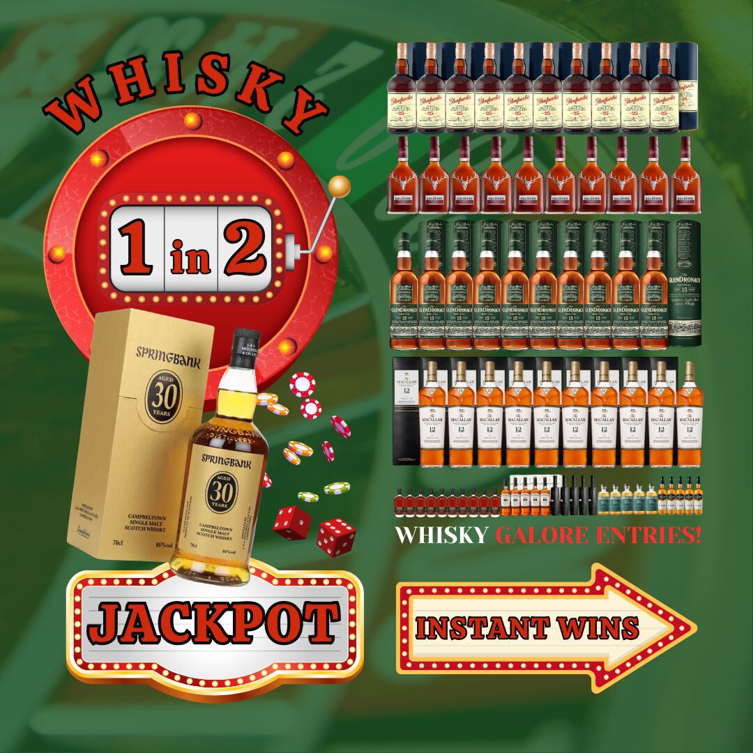 THE WHISKY 1 IN 2! One In Two Chance Of Being A Winner! A Mighty Main Prize Of Springbank 30YO – 500 INSTANT WINS!