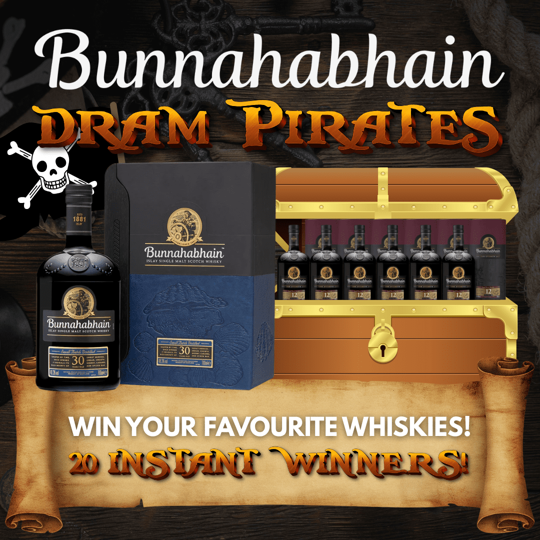 WIN BIG ON THE BUNNAHABHAIN DRAM PIRATES! BUNNAHABHAIN 30 YEAR OLD MAIN PRIZE + 20 BOTTLES INSTANT WINS!