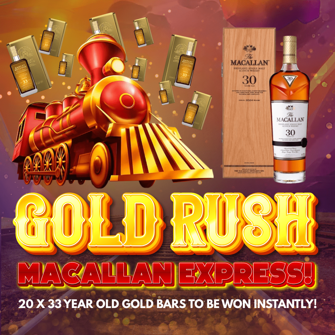 WIN ON THE MACALLAN GOLD EXPRESS! MACALLAN 30YO MAIN PRIZE + 20 DUNCAN TAYLOR RAREST RESERVE 33YO MACALLAN GOLD BARS! 300 INSTANT WINS!