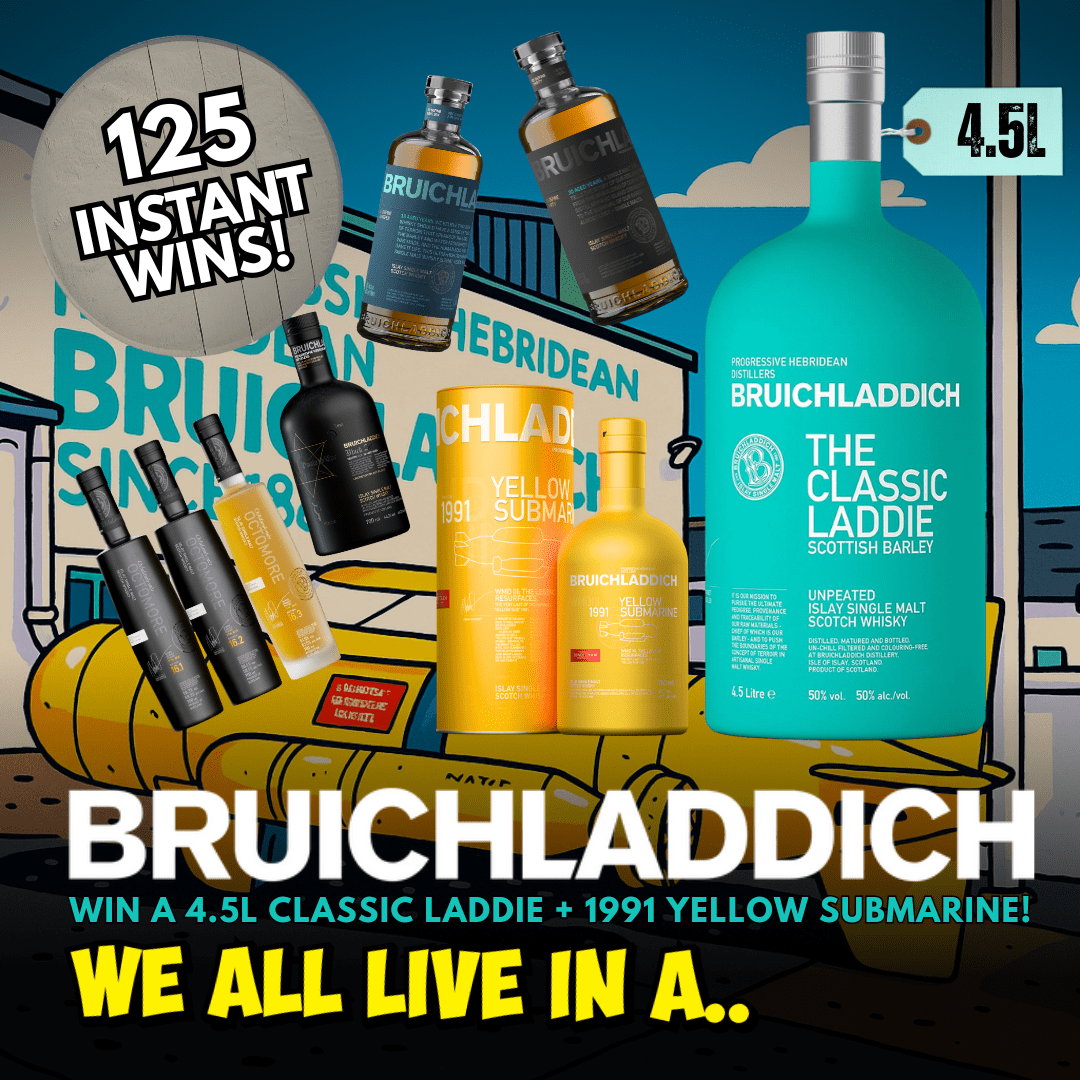 WIN THE RARE BRUICHLADDICH YELLOW SUBMARINE + A 4.5L HUMUNGOUS BOTTLE OF CLASSIC LADDIE! 125 SERIOUS INSTANT WINS AS WELL!