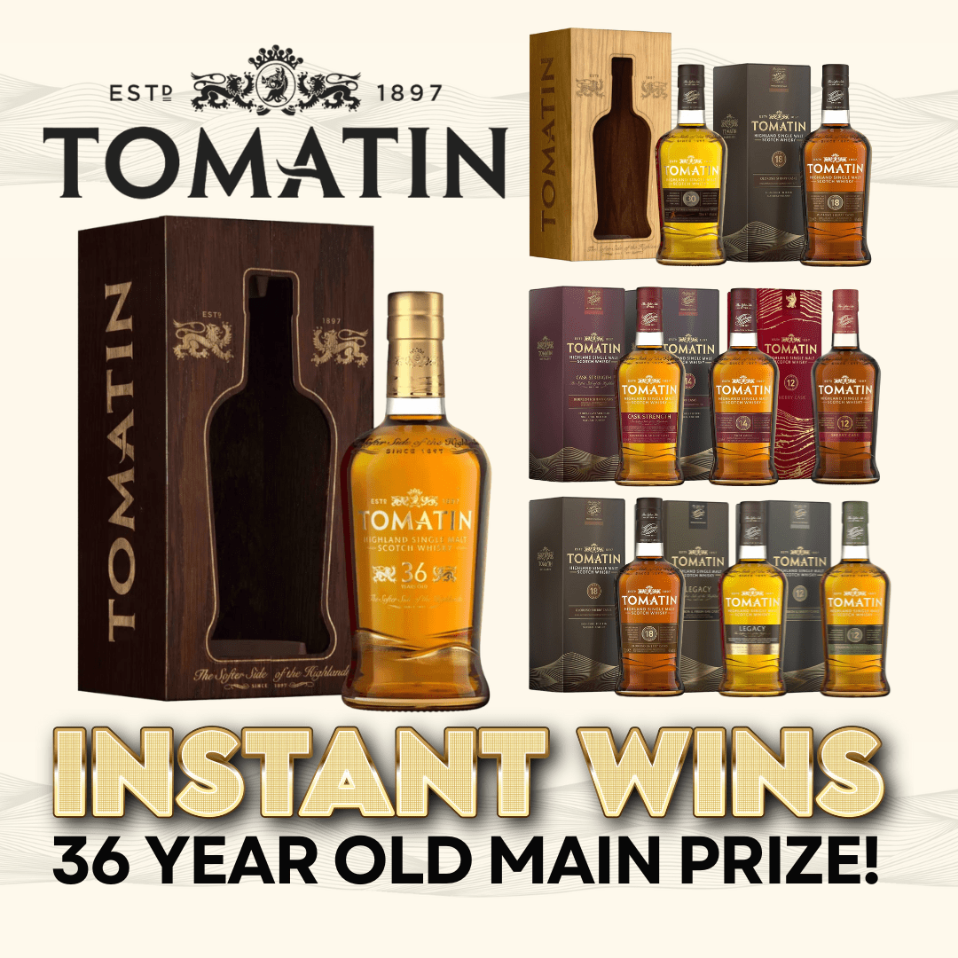 WIN THE WHOLE TOMATIN COLLECTION! 36 YEAR OLD END PRIZE + 200 INSTANT WINS!