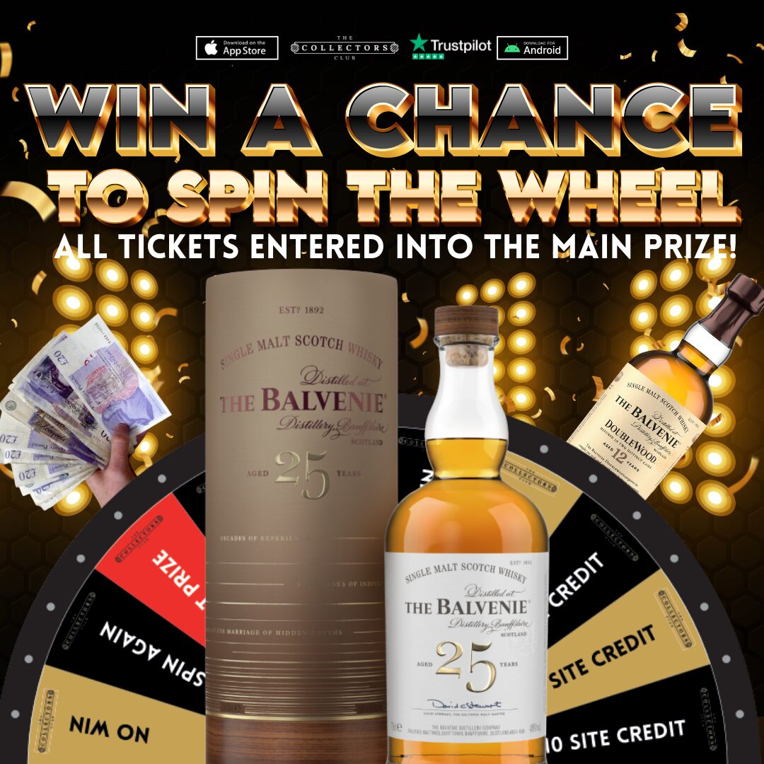 WIN THIS BALVENIE 25 YEAR OLD RARE MARRIAGES + 10 BONUS WIN SPINS!