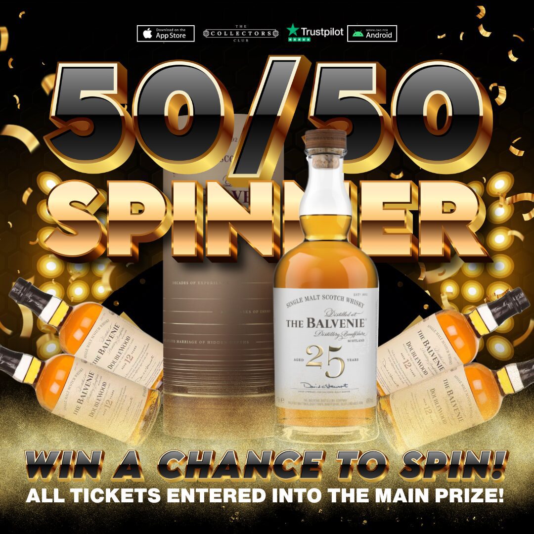 On the LIVE DRAW you will have a 50/50 chance to go home with a bonus bottle (Balvenie 12YO).