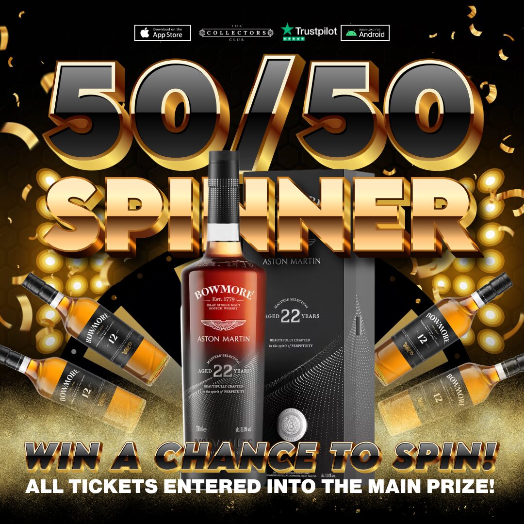 WIN THIS BOWMORE 22YO ASTON MARTIN LIMITED EDITION! PLUS 5 BONUS 50/50 INSTANT WIN SPINS!