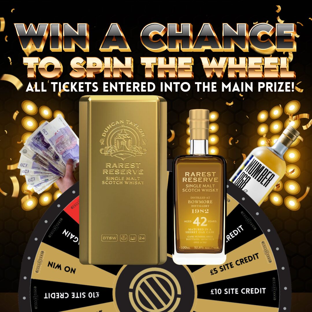 WIN THIS BOWMORE 42 YEAR OLD GOLD BAR! DUNCAN TAYLOR RAREST RESERVE! PLUS 10 BONUS WIN SPINS!